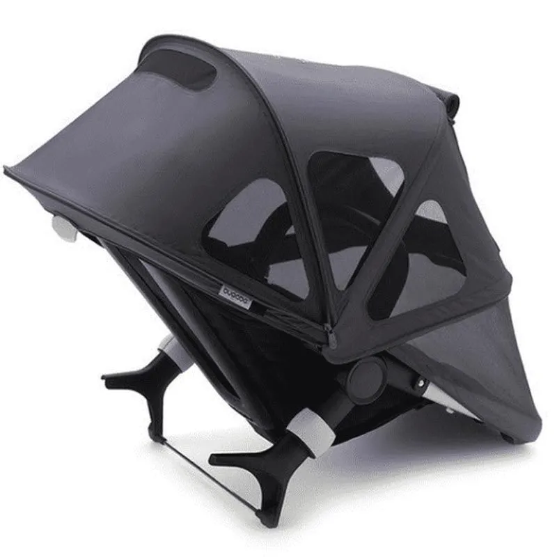 O capô ventilado Bugaboo Donkey apresenta proteção solar UPF 50+ (exceto na zona dos painéis de malha ventilados).