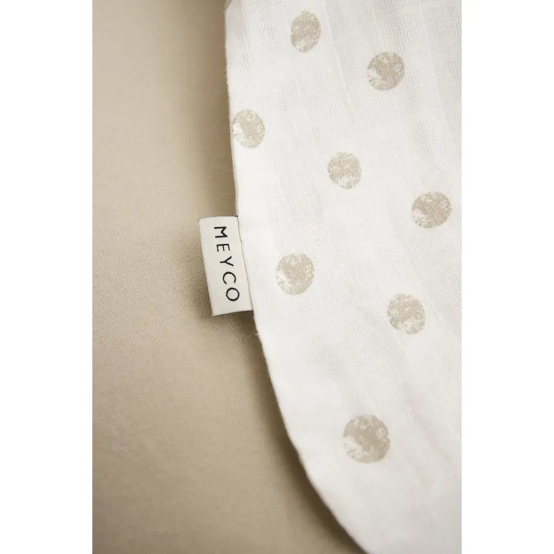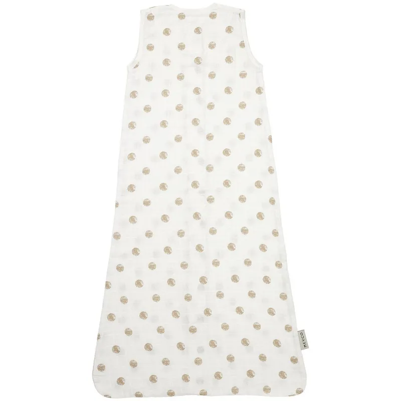 O saco de dormir para bebê com estampa de bolinhas é feito de algodão 100% hidrófilo e, portanto, é perfeito para usar durante os dias e noites mais quentes do verão. O algodão hidrófilo respira muito bem, tem uma excelente absorção de umidade e seca muito rapidamente. Isso mantém o ambiente de sono do seu pequeno a uma temperatura perfeita durante os dias e noites quentes, sem que fique demasiado quente. O saco de dormir tem um ajuste seguro graças à boa conexão no pescoço e nos braços. Lavar o saco de dormir antes de usá-lo reforça o tecido hidrófilo e dá-lhe um aspecto agradável e luxuoso. O saco de dormir tem um valor TOG de 0,3. Quanto maior o valor TOG, mais quente será o produto para o seu pequeno.