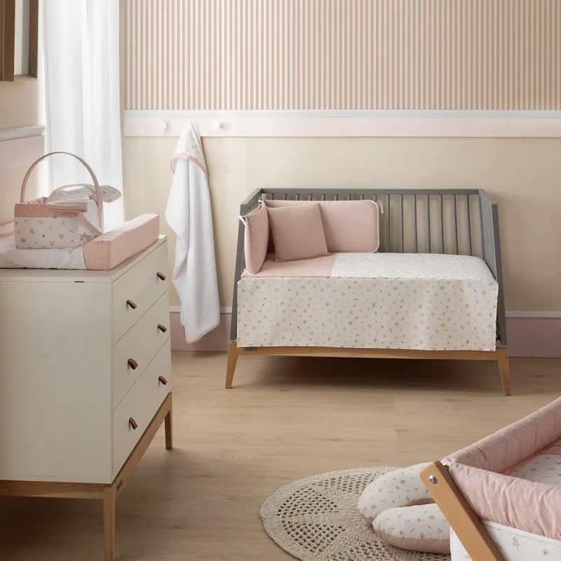 Conjunto de 2 peças para vestir o berço, composto por colcha mais protetor.