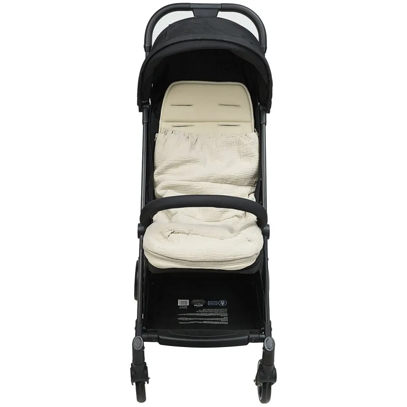 Vai sair de excursão com o seu pequeno aventureiro? Com este saco para buggy da Meyco Baby, o seu pequeno estará bem agasalhado e confortável. Mas este saco é realmente único! Você pode abrir completamente a parte superior com um zíper e usá-la como um colchão independente para o buggy. Isso significa que você tem um saco e um colchão em um único produto: super útil e também uma opção fantástica para o seu bolso. O saco é feito de musselina de algodão 100% pré-lavada, que é maravilhosamente suave e muito respirável. O enchimento leve é composto por 100% poliéster. Você pode abrir e fechar o saco facilmente graças ao seu zíper. Está muito quente? Basta abri-lo ou remover completamente a parte superior e usar a parte inferior como colchão para o buggy. Prático, não é? Este saco é compatível com qualquer buggy que tenha um cinto de três ou cinco pontos. Os cintos passam facilmente pelas aberturas do saco, então o seu pequeno estará sempre seguro e confortável. Pensaram em tudo: à medida que seu filho crescer, você poderá ajustar a posição dos cintos. Você pode usar este saco completo até uma altura máxima de 80 cm, o que equivale aproximadamente a 1 - 1,5 anos. Você removeu a parte superior? Então você pode continuar usando o colchão até os 4 ou 5 anos! Ideal para acompanhar o crescimento do seu pequeno.