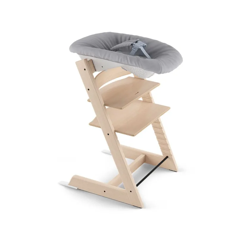 O Newborn Set está designado para ser leve, seguro e fácil de remover e colocar no teu trono com o teu recém-nascido. Tem um engate com um simples clique, e um indicador que mostra se está corretamente fixado à cadeira, ou não chegou a encaixar completamente. Também conta com a possibilidade de alterar a inclinação com uma única mão, para que possam colocar o seu bebé da forma mais confortável, de acordo com a situação no seu trono. O design escandinavo do novo nascimento do seu famoso criador Peter Opsvik, é o culminar da ergonomia, simplicidade e conforto para o seu bebé e para si.