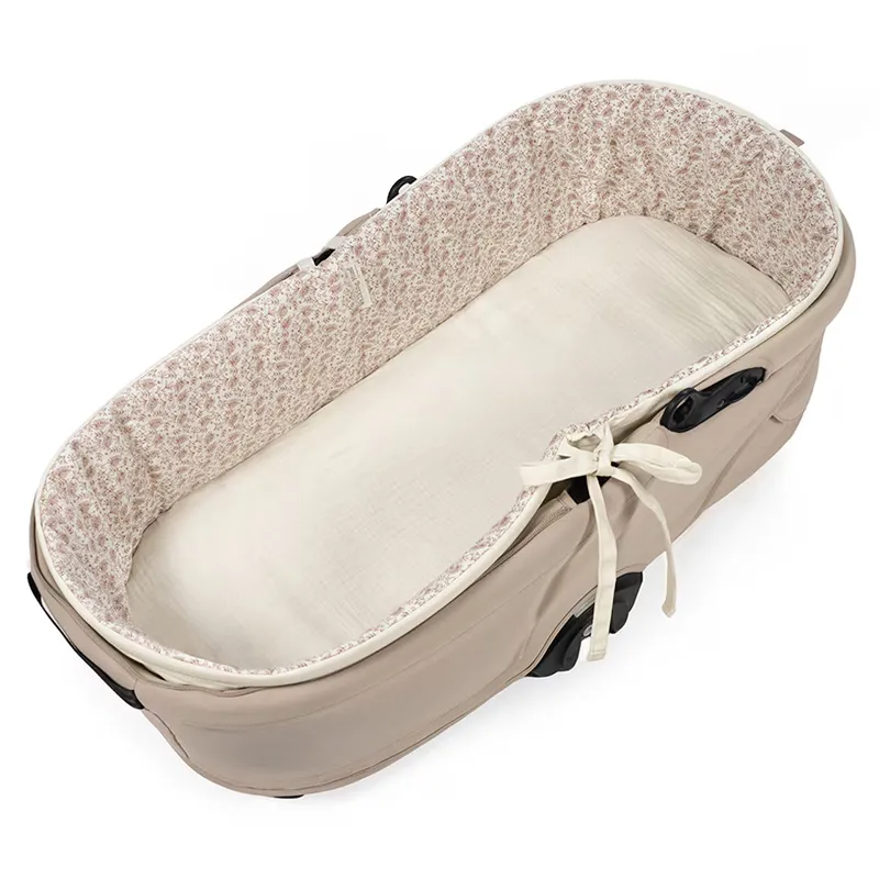 Conta com um design estruturado com varas que se adapta perfeitamente ao interior do capazo, proporcionando um ambiente acolhedor e seguro.
