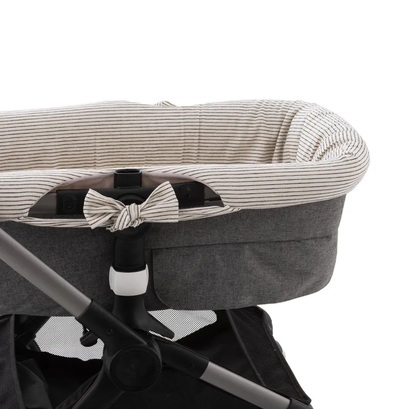 Graças à sua confecção têxtil, adapta-se ao interior do capazo sem necessidade de fechos, facilitando sua colocação e retirada. Fabricada com tecidos suaves e agradáveis ao toque, proporciona conforto ao bebê e protege o interior do capazo, sendo uma opção prática e funcional para o uso diário.