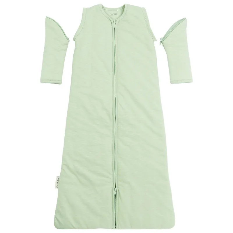 El saco de dormir está disponible en las siguientes tallas: 60 cm para usar de 0 a 4 meses aproximadamente y una longitud de 50 a 65 cm. 70 cm para usar de 3 a 9 meses y una longitud de 60 a 75 cm. 90 cm para uso de 6 a 30 meses aproximadamente y una longitud de 70 a 95 cm. 110 cm para utilizar a partir de los 24 meses aproximadamente y una longitud de 90 a 115 cm. La longitud de tu hijo es más importante que la edad para determinar la talla adecuada del saco de dormir. Si el saco de dormir es demasiado grande, tu bebé puede hundirse. Nunca utilices un saco de dormir si la cabeza de tu pequeño cabe por la abertura del cuello. En un saco de dormir para bebés demasiado pequeño, tu hijo no podrá estirar completamente las piernas ni tendrá espacio suficiente para moverse, la distancia entre sus pies y la parte inferior del saco de dormir no debe ser inferior a 10 cm. Así que asegúrate siempre de tener el saco de dormir del tamaño adecuado. Óptimo confort para dormir en invierno, primavera y otoño. Con mangas desmontables. 100% algodón: para un clima perfecto para dormir. Ajuste seguro. Disponible en varias tallas. No utilice demasiado detergente (también es mejor para el medio ambiente). Lavable a máquina a 30 grados como máximo. Utiliza una bola de secadora después del lavado para aflojar bien el relleno.