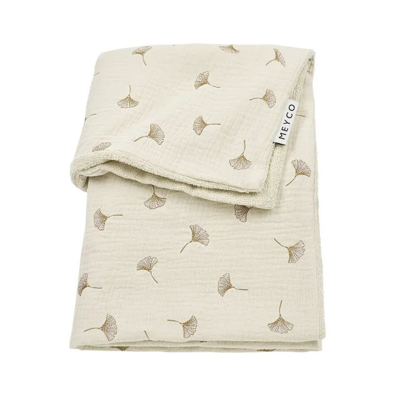 Dale a tu peque una maravillosa sensación de seguridad con esta preciosa manta de Meyco Baby. Es perfecta para envolver a tu bebé en esos momentos cálidos y acogedores que compartís juntos. La manta tiene un fondo en tono Soft Sand y está decorada con un precioso bordado. Las hojas de ginkgo, de estilo unisex, aportan un toque lujoso que convierte esta manta en un auténtico centro de todas las miradas, tanto en la habitación del bebé como cuando vais de paseo. La manta está fabricada en 100% algodón, ideal para la delicada piel del bebé. La parte superior es de suave muselina y lleva un bonito bordado decorativo. La parte inferior, de tejido tipo toalla, tiene un tacto agradable y suave. Con unas medidas de 75x100 cm, esta manta es perfecta para la cuna, el moisés, la cuna de viaje o la cuna colecho. Y por supuesto, también es ideal para acurrucarse juntos, ya sea en casa o fuera. La manta tiene un valor TOG de 1.5. Cuanto mayor es el valor TOG, más cálido es el producto para tu peque.