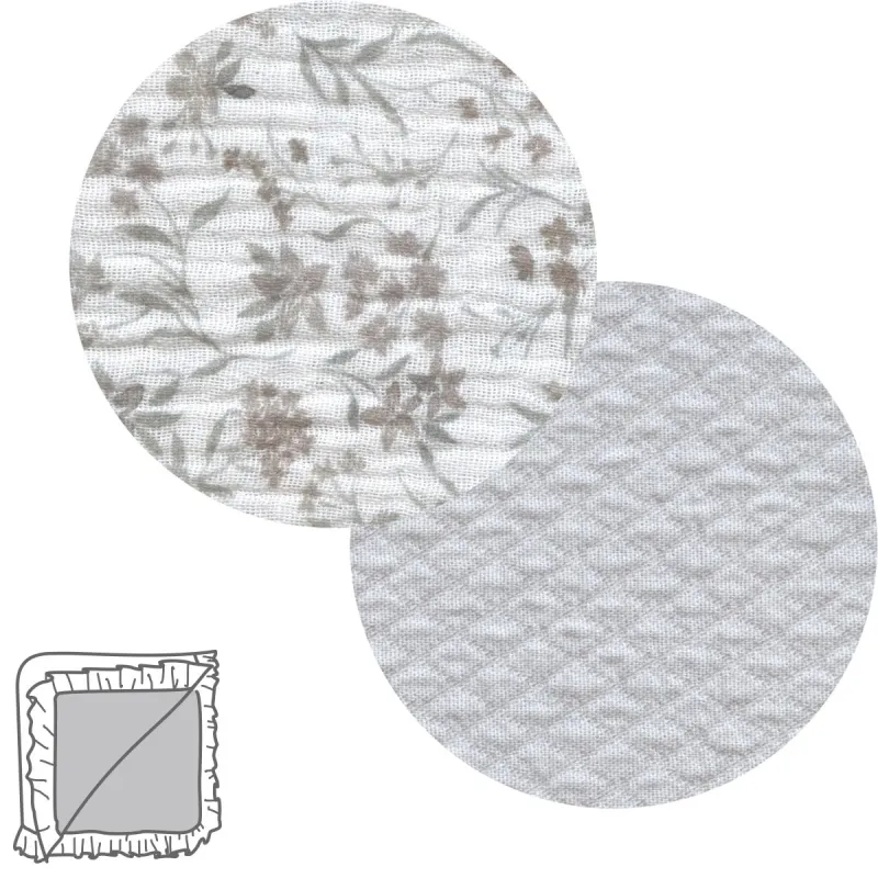 Una manta ligera y reversible, diseñada para los más pequeños. Fabricada con bambula de algodón estampado y punto tricot suave en el reverso, con un encantador volante fruncido. Ideal para la cuna, minicuna o paseos en capazo durante todo el año. Tamaño: 70 cm x 70 cm.