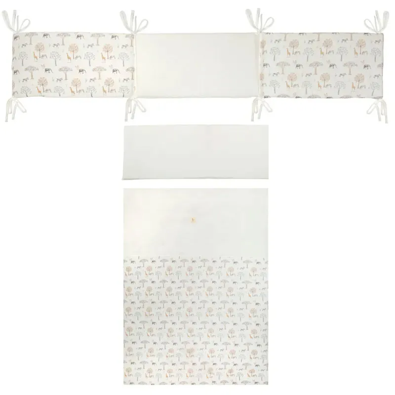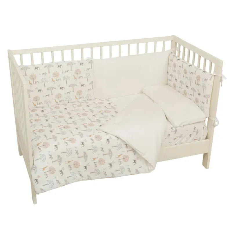 Conjunto completo para la cuna: Incluye funda nórdica, relleno, protector de cuna y funda de almohada, ofreciendo una solución coordinada y funcional.