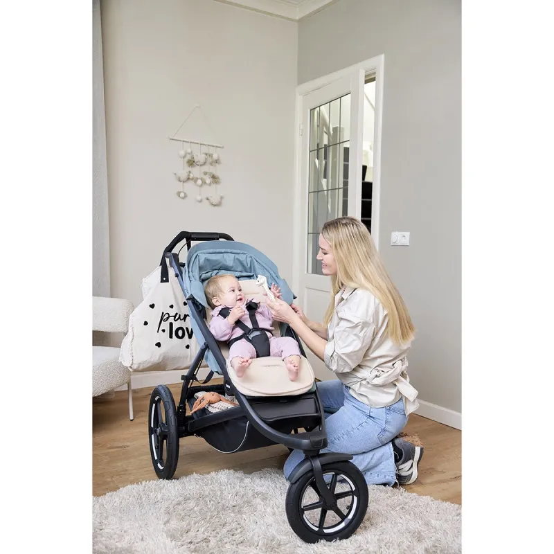 ¿Te vas de excursión con tu pequeño aventurero? Con este saco para buggy de Meyco Baby, tu peque irá bien abrigado y cómodo. ¡Pero este saco es realmente único! Puedes abrir completamente la parte superior con una cremallera y usarla como colchoneta independiente para el buggy. Eso significa que tienes un saco y una colchoneta en un solo producto: súper útil y además una opción fantástica para tu bolsillo. El saco está hecho de muselina de algodón 100% prelavada, que es maravillosamente suave y muy transpirable. El relleno ligero está compuesto por 100% poliéster. Puedes abrir y cerrar el saco fácilmente gracias a su cremallera. ¿Hace demasiado calor? Simplemente ábrelo o quita completamente la parte superior y utiliza la parte inferior como colchoneta para el buggy. ¿Práctico, verdad? Este saco es compatible con cualquier buggy que tenga un arnés de tres o cinco puntos. Los cinturones pasan fácilmente por las aberturas del saco, así que tu peque estará siempre seguro y cómodo. Se ha pensado en todo: a medida que tu hijo crezca, podrás ajustar la posición de los cinturones. Puedes usar este saco completo hasta una estatura máxima de 80 cm, lo que equivale aproximadamente a 1 - 1,5 años. ¿Has quitado la parte superior? Entonces puedes seguir usando la colchoneta ¡hasta los 4 o 5 años! Ideal para acompañar el crecimiento de tu peque.