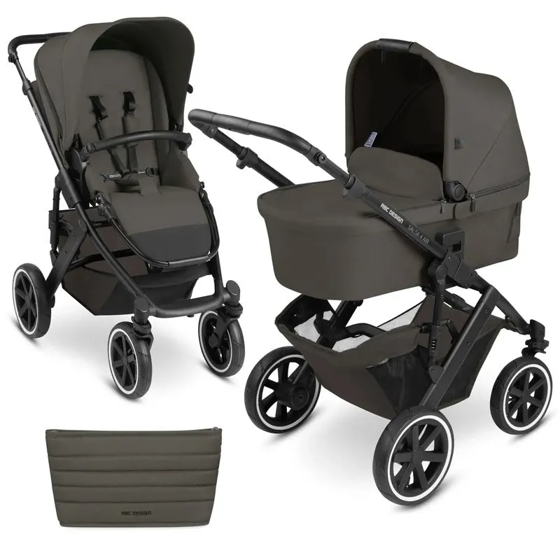 La barra de empuje se puede ajustar individualmente a cada padre con un movimiento de muñeca. Con los adaptadores opcionales, puede fijar fácilmente su asiento de coche al cochecito. Con el soporte ABC Design Universal Fix, se pueden colocar accesorios como un bolso cambiador, un portavasos o una luz con un solo clic.