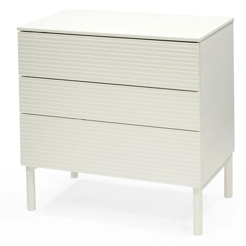 El espacio libre para los pies de debajo la Cómoda te permite estar cerca de tu bebé para abrazarlo y cambiarlo. El diseño escandinavo junto con el material duradero se combinan para crear un mueble que resistirá el paso del tiempo.