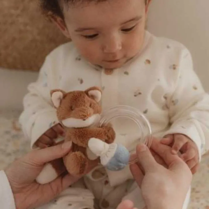 El sonajero anillo en forma de zorro de la colección Amigos del Bosque de Little Dutch es un juguete encantador que estimula los sentidos del bebé desde el nacimiento. Con su diseño atractivo y multifuncional, combina juego, desarrollo sensorial y decoración.