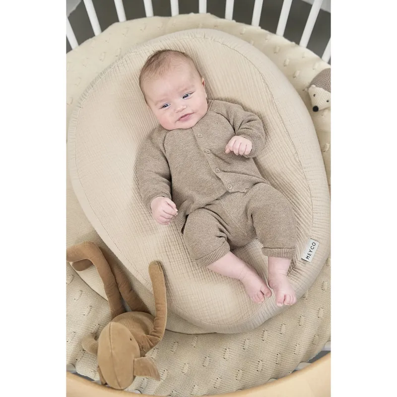 "Dale una segunda vida a tu cojín de lactancia o embarazo con esta funda relax de Meyco Baby. En un momento, puedes convertirlo en un confortable nido para tu bebé, ¡y además es una opción sostenible! Este nido es ideal para siestas cortas o momentos de descanso, y puedes usarlo en el parque, la cuna o sobre una alfombra. Su forma le aporta al bebé esa sensación recogida similar al vientre materno, ayudándole a sentirse seguro, tranquilo y relajado. ¿No es ideal? Más sobre la funda relax Está confeccionada en suave muselina de algodón prelavado. Gracias al elástico en la parte inferior, puedes colocarla fácilmente sobre tu cojín de lactancia. ¿Se ha manchado? ¡No pasa nada! Se quita fácilmente y se lava sin complicaciones. Se puede usar desde el nacimiento. En cuanto tu peque empiece a darse la vuelta (normalmente hacia los 6 o 7 meses), se recomienda dejar de usarla. Utilizar siempre bajo la supervisión de un adulto. Ventajas de un vistazo Da una segunda vida a tu cojín de lactancia o embarazo Apta para cojines de entre 170 y 190 cm (no incluido) Muselina de algodón 100% prelavado, suave y agradable Disponible en varios colores Combina con toda la colección Meyco Baby Cuidados para mantenerla como nueva No uses demasiado detergente (mejor para el tejido y el medio ambiente) Lavable a máquina a 40 ºC Apta para secadora"