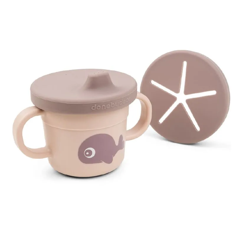 El Vaso con Boquilla/Porta Snack Foodie es un práctico accesorio 3 en 1 de Done by Deer, que funciona como vaso con boquilla, porta snack y vaso con asas para facilitar la transición de tu pequeño.