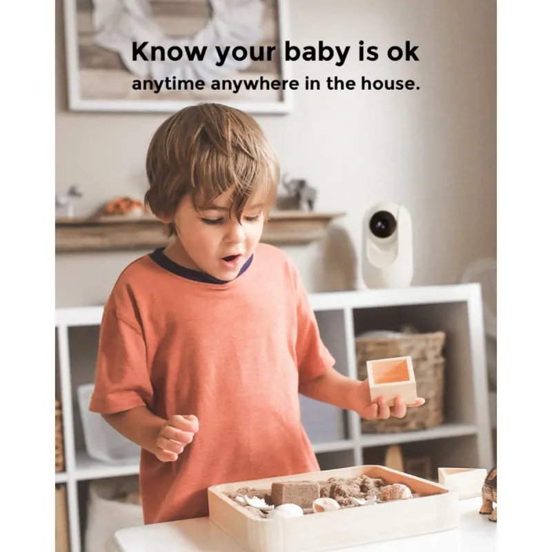 Ajusta horizontal y verticalmente (pan, tilt y zoom) desde el monitor o la app para cubrir áreas amplias de la habitación.