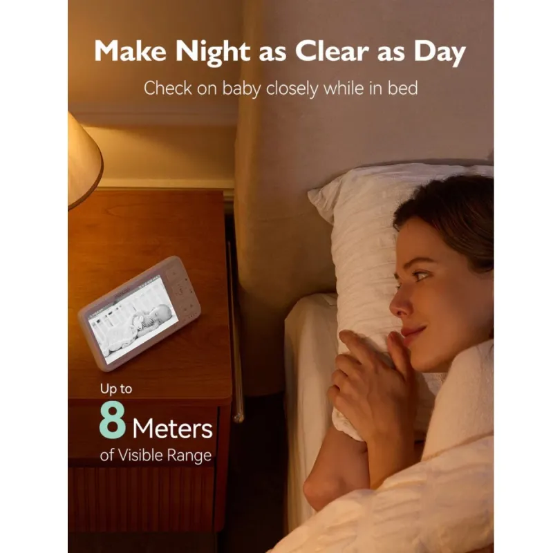 La cámara Full HD 1080P dedicada al monitor de bebé Momcozy BM03 proporciona una calidad de imagen nítida y realista para que puedas vigilar a tu bebé con total tranquilidad.